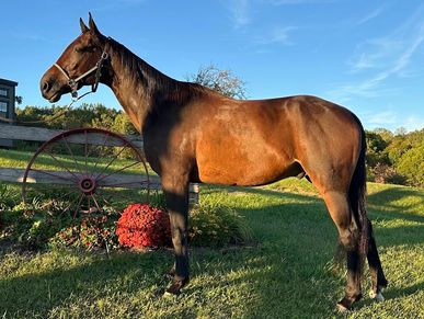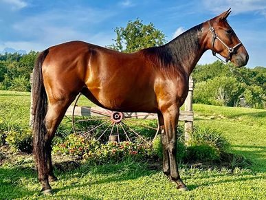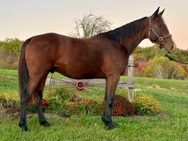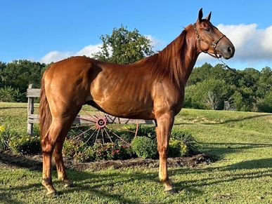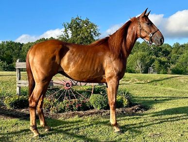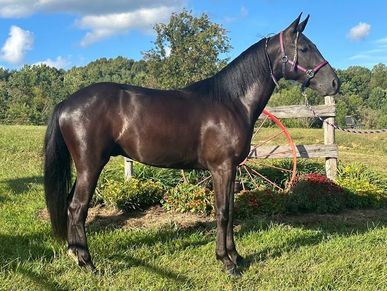 Max is just as good as he is pretty! This gelding is bred for speed. He is well broke and ready to push him for more. He's currently cruising around 20 mph, but has the potential to finish out in the upper 20's with a rider willing to build him. He's smooth and all rack!