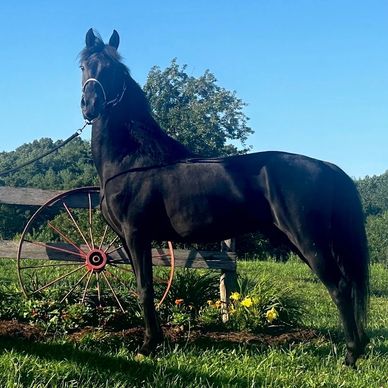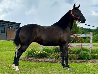 Crow is a dream horse! He is only a baby at two years old and well on his way to becoming everything you have always wanted. He is absolutely striking in appearance and has a willing mind to boot! He's broke to drive and ride. He is traffic safe. He has a big floating trot and a beautiful canter! Do not let this sweet baby pass you by. This is your chance!