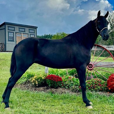 This mare by Lazarus N and out of an Art Major dam is the whole package! She absolutely gorgeous, sweet, and a super nice racking horse! She is definitely a barn favorite. She's young with her whole life ahead of her to be your next trail, show, or buggy horse and will raise you some beautiful babies.